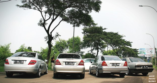 Mulai lah saya coba ingat ingat siapa saja teman saya yang memiliki Mercy C Class dengan generasi yang tidak ada yang sama. Untuk warna awalnya punya ambisi untuk semua generasi harus berwarna silver karena nick name Mercedes kan Silver Arrow. Hehehe… Tapi terkendala di W205 nya karena mobil modern mewah saat ini sudah jarang berwarna silver kebanyakan putih. Kebetulan memang ada hopeng saya yang pakai W205 putih. Setelah saya ajakin satu per satu ternyata mereka pada senang dengan ide dan konsep saya ini. Mereka juga bosen kayanya di rumah terus, namun konsep ini tidak ada yang turun dari mobil ya. Jadi kita semua standby di mobil untuk di foto. Kalaupun ada yang turun, kita tidak ada kontak fisik dan di outdoor bukan indoor yang berAC ya. Akhirnya set tanggal dan waktu semua ternyata OKE, termasuk teman saya yang jadi fotografernya langsung OKE.