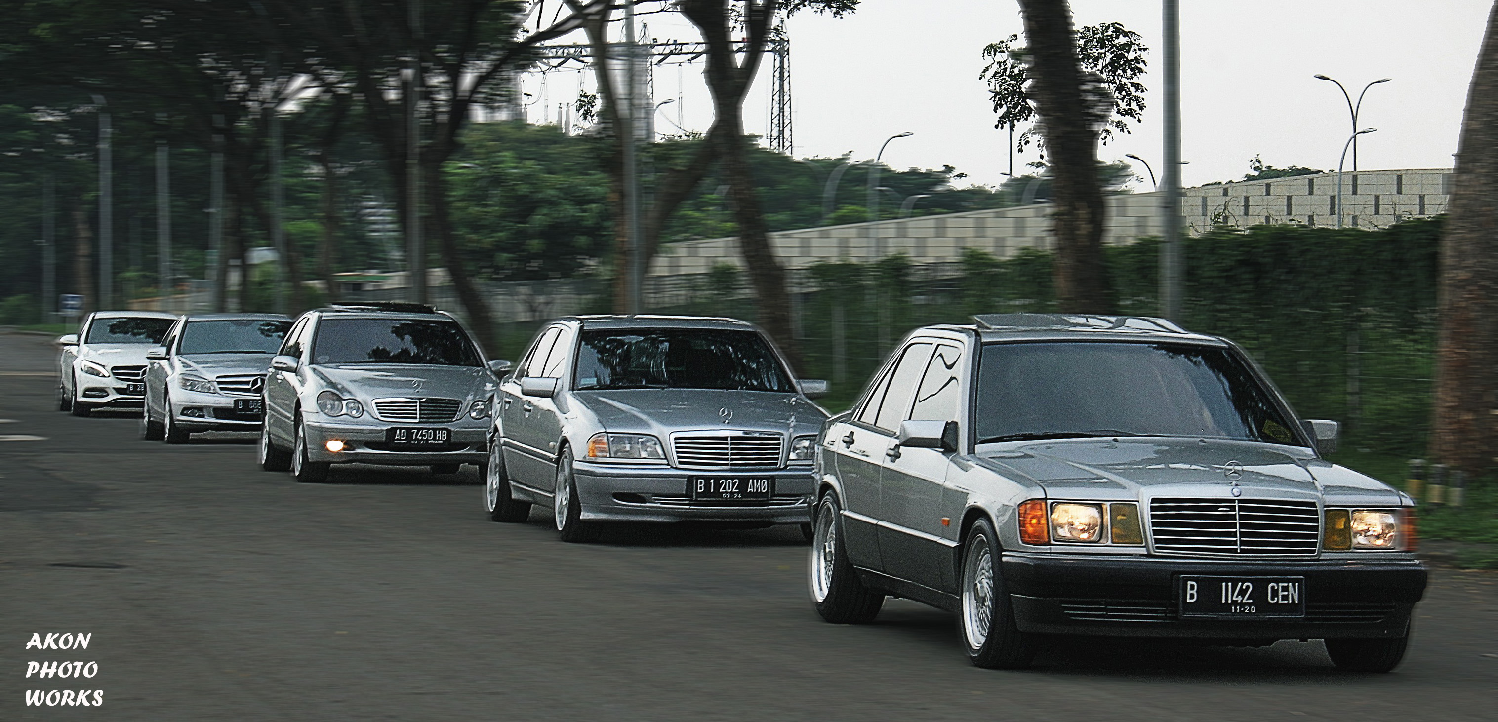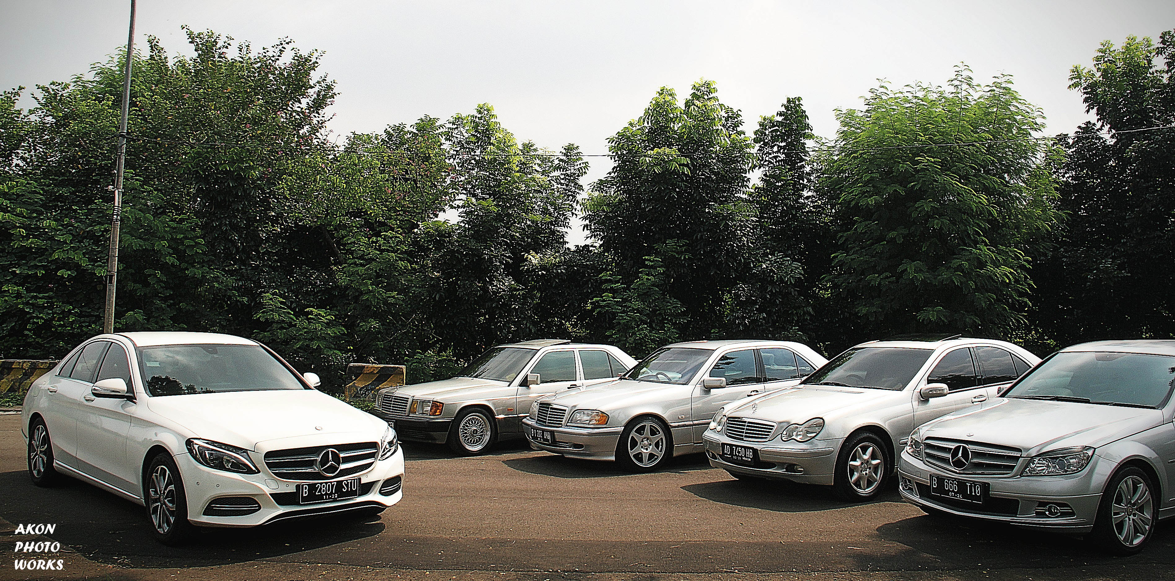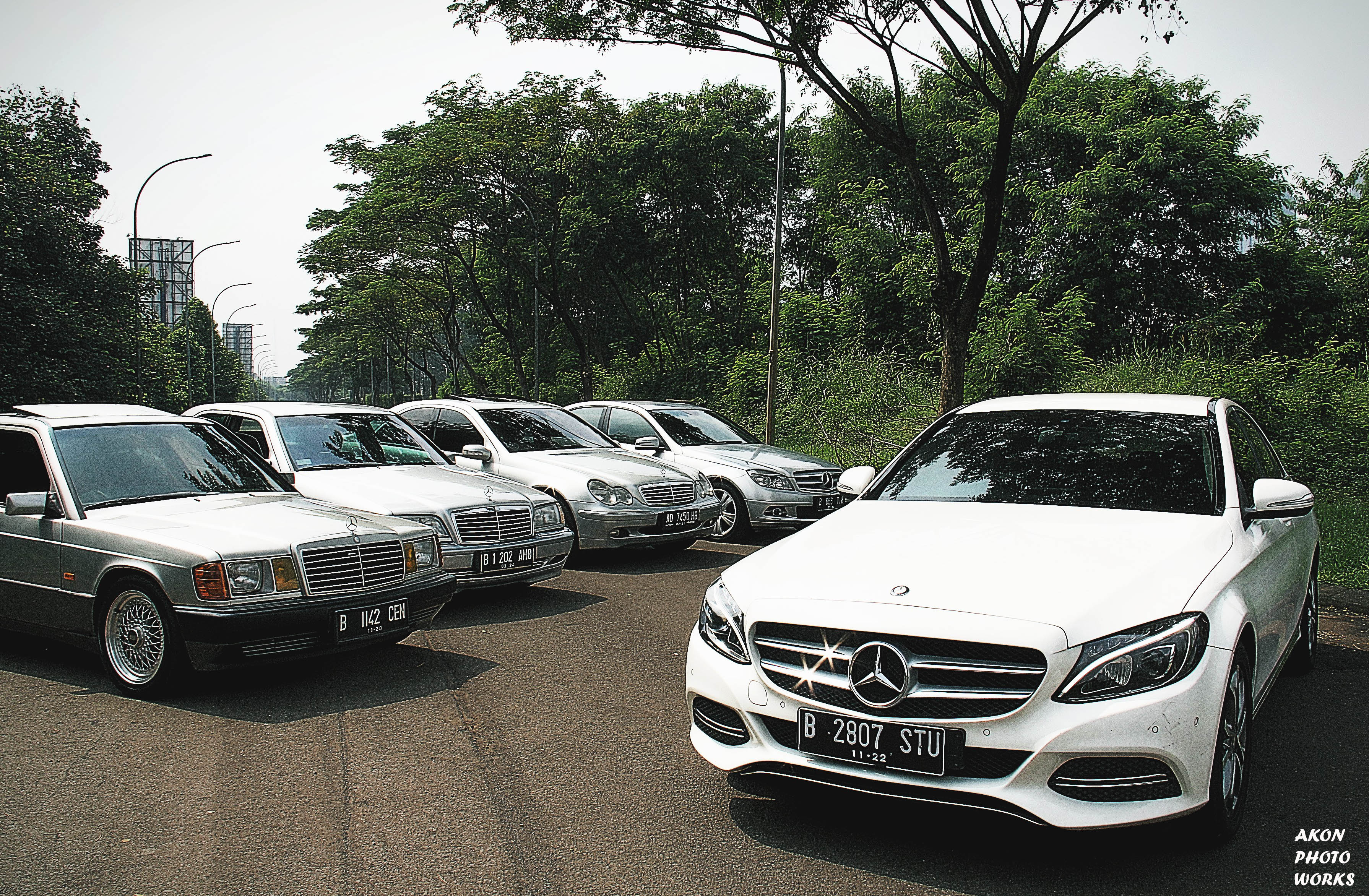 Mulai lah saya coba ingat ingat siapa saja teman saya yang memiliki Mercy C Class dengan generasi yang tidak ada yang sama. Untuk warna awalnya punya ambisi untuk semua generasi harus berwarna silver karena nick name Mercedes kan Silver Arrow. Hehehe… Tapi terkendala di W205 nya karena mobil modern mewah saat ini sudah jarang berwarna silver kebanyakan putih. Kebetulan memang ada hopeng saya yang pakai W205 putih. Setelah saya ajakin satu per satu ternyata mereka pada senang dengan ide dan konsep saya ini. Mereka juga bosen kayanya di rumah terus, namun konsep ini tidak ada yang turun dari mobil ya. Jadi kita semua standby di mobil untuk di foto. Kalaupun ada yang turun, kita tidak ada kontak fisik dan di outdoor bukan indoor yang berAC ya. Akhirnya set tanggal dan waktu semua ternyata OKE, termasuk teman saya yang jadi fotografernya langsung OKE.